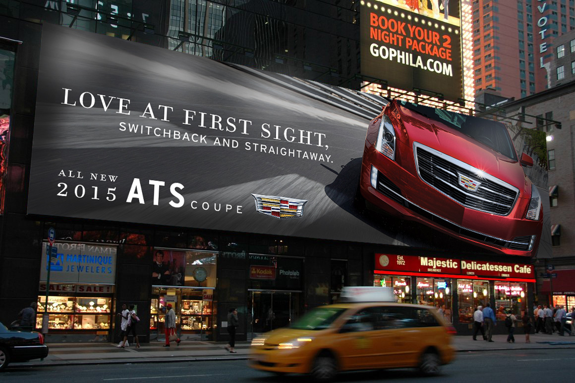 The introduction of the the long-awaited Cadillac ATS Coupe. A stylish, sporty two-door version of the ATS sedan, featuring a wider track, lower roofline, and updated exterior styling, including the new wreathless Cadillac crest.